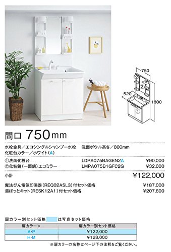 TOTO 洗面台 Vシリーズ 幅750 奥行520 高さ1800 本体:2枚扉タイプ ホワイト ミラー:1面鏡(エコミラー) LDPA075BAGEN2A + LMPA075B1GFC2G 洗面化粧台