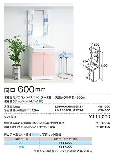 TOTO 洗面台 Vシリーズ 幅600 奥行520 高さ1800 本体:2枚扉タイプ ペールピンク ミラー:1面鏡(エコミラー) LDPA060BAGEN2P + LMPA060B1GFC2G 洗面化粧台