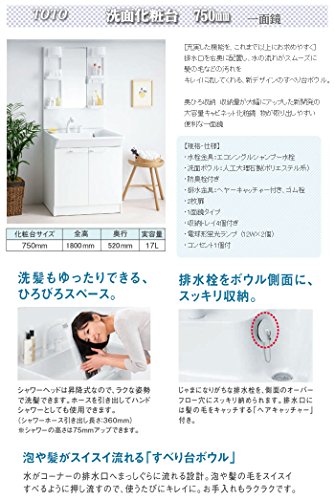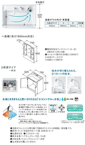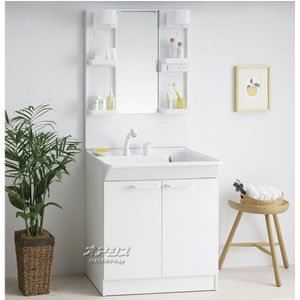 洗面化粧台 Vシリーズ 2枚扉・一面鏡 幅750mm×高さ1800mm LDPA075BAGEN2A+LMPA075B1GFG2G