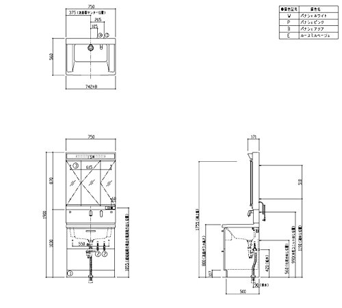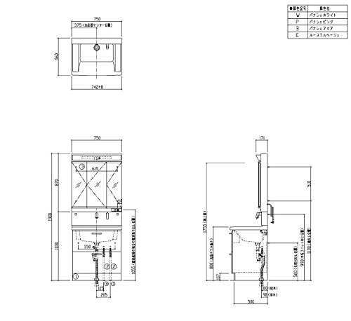 - 鏡:3面鏡(蛍光灯)(LMCC075A3GAC1G),水栓ユニット(LTL363EE),台:2段引き出し(LDCC075BCGGG1W)の3点セット。