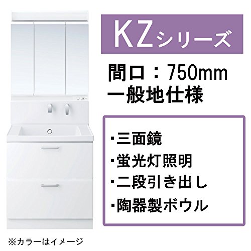 TOTO 洗面化粧台セット(KZ) 750mm 三面鏡(蛍光灯)+2段引き出し パナシェホワイト KZ75A1W