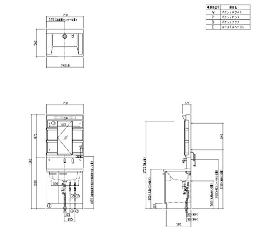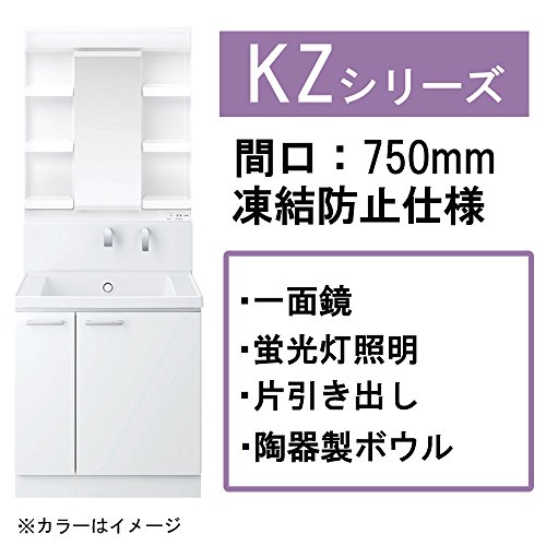 - 鏡:1面鏡(LMCC075A1GAC1G),水栓ユニット(LTL363EEZ),台:片引き出し(LDCC075BJGGG1P)の3点セット。寒冷地向け(水抜き機能あり)。