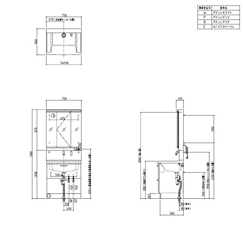 - 鏡:スウィング3面鏡(LED)(LMCC075A3SLC1G),水栓ユニット(LTL363EE),台:2段引き出し(LDCC075BCGGG1P)の3点セット。