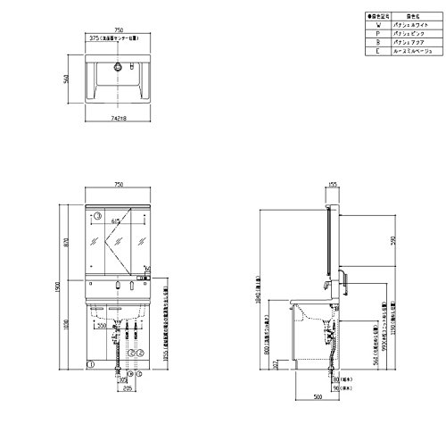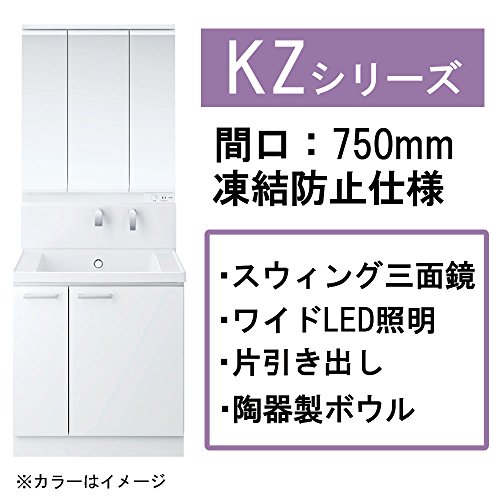 - 鏡:スウィング3面鏡(LED)(LMCC075A3SLC1G),水栓ユニット(LTL363EEZ),台:片引き出し(LDCC075BJGGG1E)の3点セット。寒冷地向け(水抜き機能あり)。