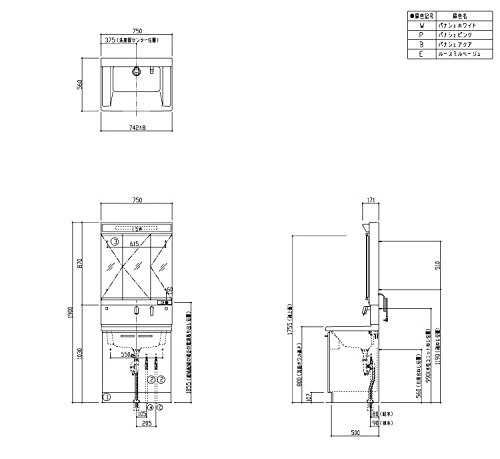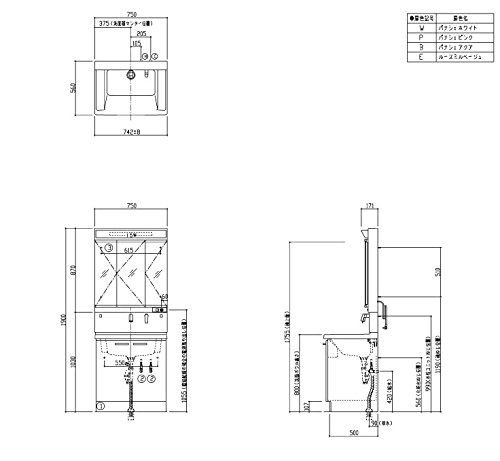 - 鏡:3面鏡(蛍光灯)(LMCC075A3GAC1G),水栓ユニット(LTL363EE),台:2枚扉(LDCC075BAGGG1E)の3点セット。