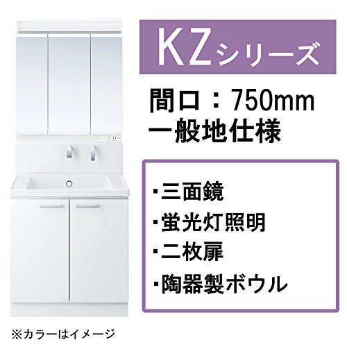 TOTO 洗面化粧台セット(KZ) 750mm 三面鏡(蛍光灯)+2枚扉 ルースミルベージュ KZ75B1E