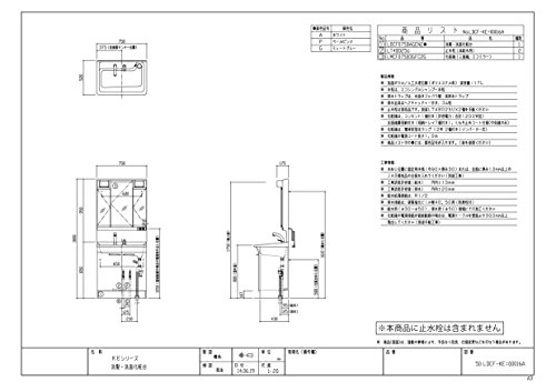 - 鏡:3面鏡(LMCF075B3GFC2G),台:2枚扉(LDCF075BAGES2A)の2点セット。寒冷地向け(水抜き機能あり)。