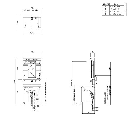 - 鏡:1面鏡(LMCC075A1GAC1G),水栓ユニット(LTL363EE),台:片引き出し(LDCC075BJGGG1W)の3点セット。
