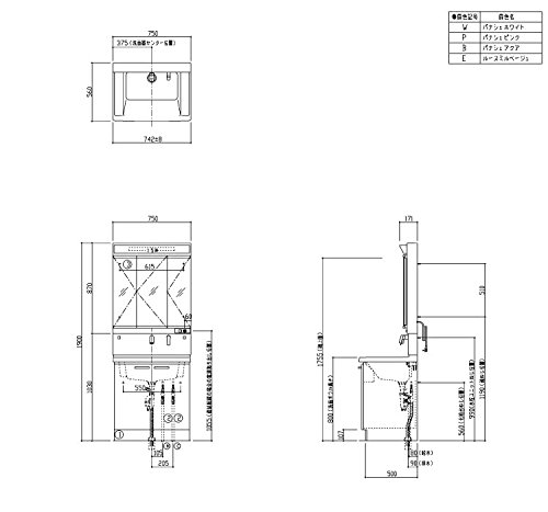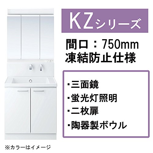 - 鏡:3面鏡(蛍光灯)(LMCC075A3GAC1G),水栓ユニット(LTL363EEZ),台:2枚扉(LDCC075BAGGG1E)の3点セット。寒冷地向け(水抜き機能あり)。