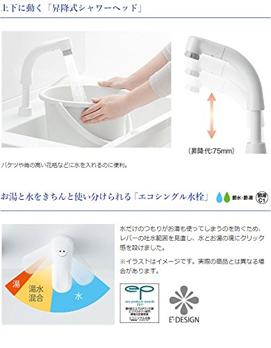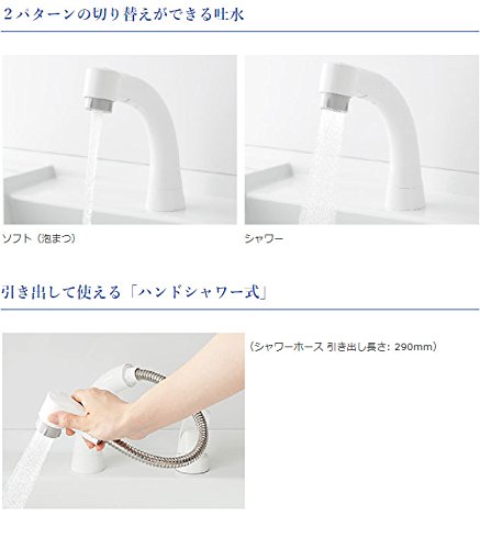 - 洗髪しやすい昇降式シャワーヘッド。引き出して使える「ハンドシャワー式」。ソフト(泡まつ)・シャワー2パターン切替吐水。