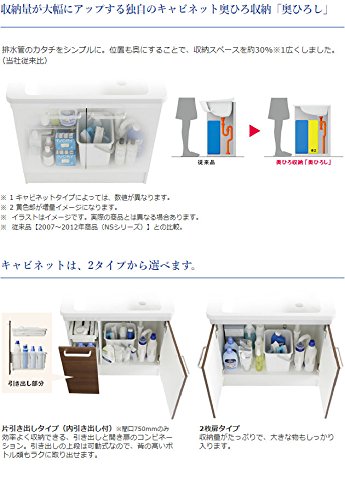 - 2枚扉:大きな物もしっかり入る開き扉タイプ。配管の工夫で収納量約30%アップ(NSシリーズ比)。