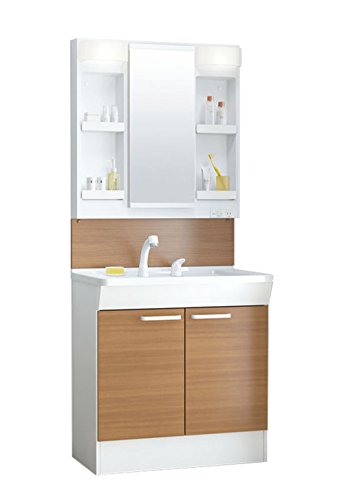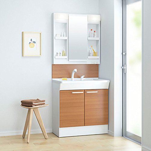 - 鏡:一面鏡(LMCL075G4GDC1G)、台:2枚扉(LDCL075BAGEN1D)、バックパネル(LPCL075BCG1D)の3点セット。扉カラー:ルースミディアムペア、バックパネルカラー:プラナスミディアムウッド。