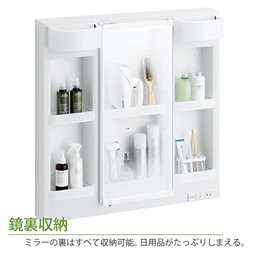 - 一面鏡:オープン棚と鏡裏収納を装備。物の出し入れがしやすいタイプ。ヒーターなしでもくもらないエコミラー付き。