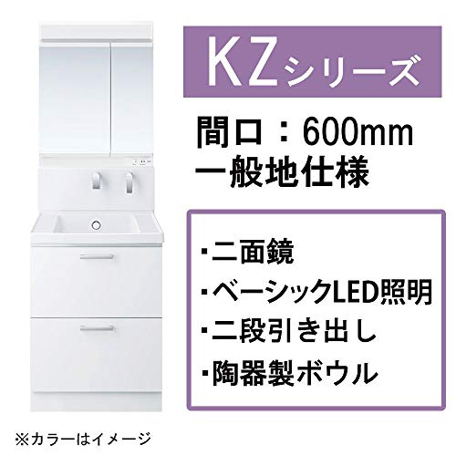TOTO 洗面化粧台セット(KZ) 600mm 二面鏡(ベーシックLED)+2段引き出し パナシェホワイト KZ62A1WN