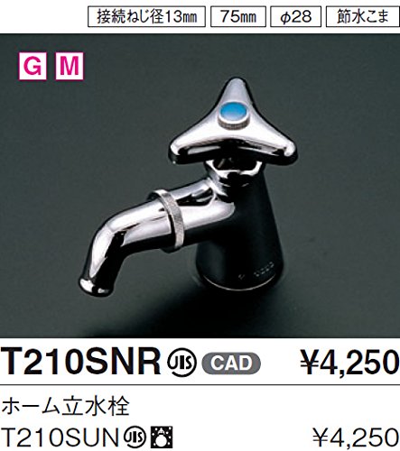 TOTO 洗面所用水栓金具【T210SNR】 単水栓 ホーム立水栓 鉛低減 [接続ねじ径13mm/75mm/φ28/節水こま]