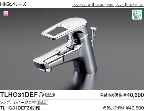 TOTO 洗面所用水栓金具【TLHG31DEFZ】(寒冷地用) エコシングル水栓 Hi-Gシリーズ シングルレバー混合栓 節水・節湯・鉛低減
