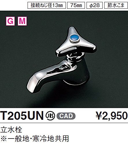 TOTO 洗面所用水栓金具【T205UN】(一般地・寒冷地共用) 単水栓 立水栓 鉛低減 [接続ねじ径13mm/75mm/φ28/節水こま]