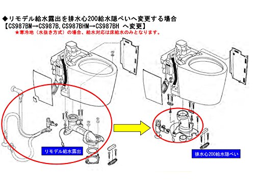 - ・リモデル給水管露出タイプから排水心200給水管隠ぺいタイプへ変更できるパーツセット(床給水用)