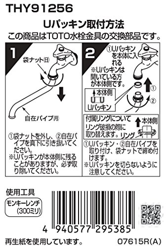 TOTO パイプ径19mm自在スパウト用Uパッキン THY91256