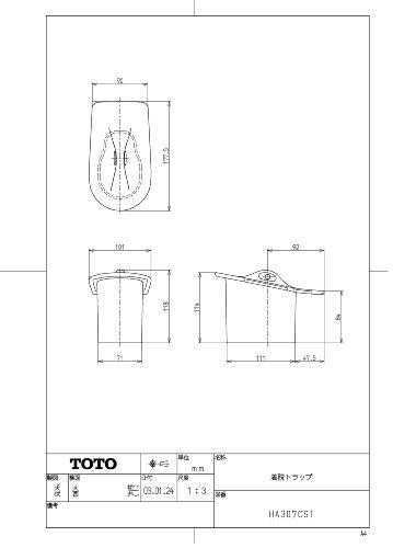 TOTO 着脱トラップ パステルアイボリー HA307CST#SC1