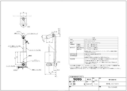 - TOTO壁付自動水栓(単水栓、AC100V)TEL120ABRアクアオートシリーズ