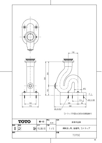 品番 T 37SE (床排水用、ゴム栓なし)鉛管用 品名 排水金具(鉛管用Sトラップ) 排水管径は65mmです。