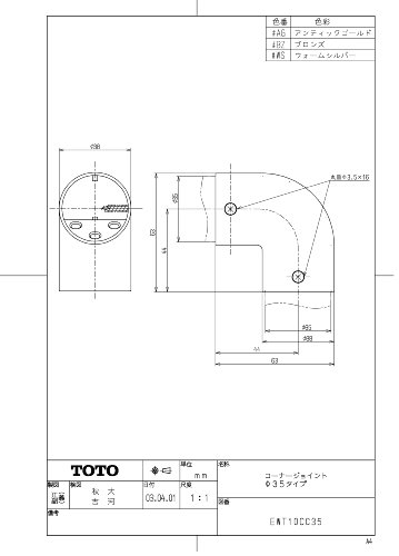 TOTO コーナージョイント φ35 ウォームシルバー EWT10CC35#WS