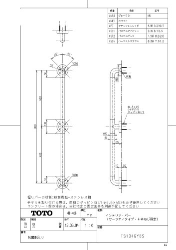 TOTO 住宅用手すり (Iタイプ) アテンションレッド TS134GKY8S#P7