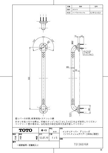 TOTO 住宅用手すり (Iタイプ) ホワイト TS136GY6R#NW1