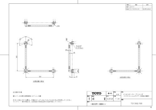 TOTO 住宅用手すり (Lタイプ) ホワイト TS136GLY66#NW1