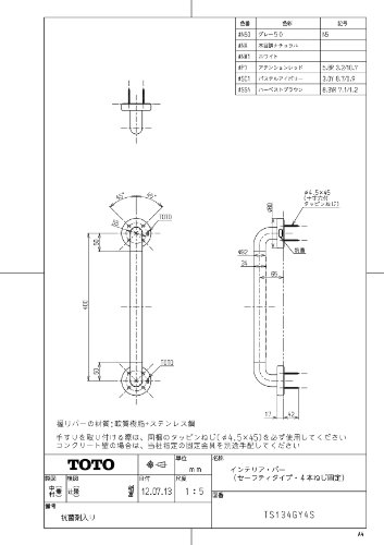 TOTO 住宅用手すり (Iタイプ) ホワイト TS134GY4S#NW1