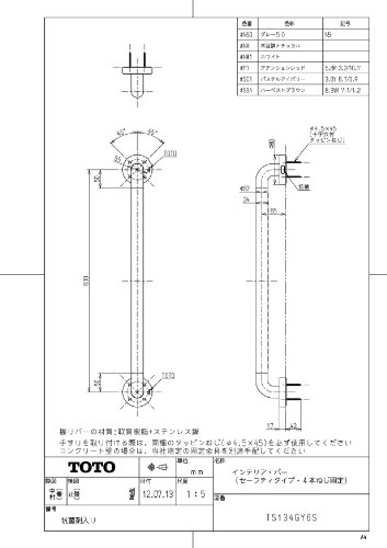 TOTO 住宅用手すり (Iタイプ) ホワイト TS134GY6S#NW1