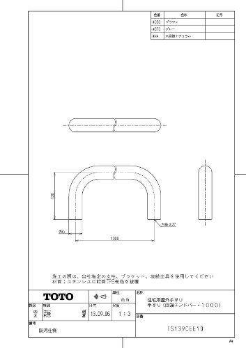 TOTO 住宅用屋外手すり 両端エンドバー 長さ:100cm ブラウン TS139CEE10#C60