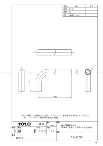 TOTO 住宅用屋外手すり 片端エンドバー 長さ:100cm ブラウン TS139CE1#C60