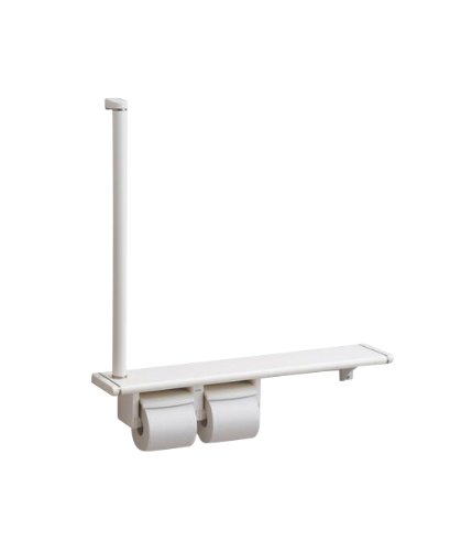 - 二連紙巻器付き 住宅用手すり (便器に向かって左側設置用) 手すり・棚一体タイプ