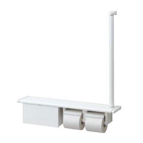 - 二連紙巻器・収納付き 住宅用手すり (便器に向かって右側設置用) 手すり・棚一体タイプ
