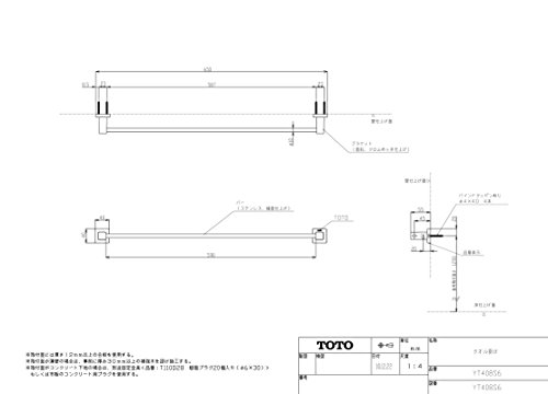 ・サイズ:650×55×40 ・バー:ステンレス製 ・ブラケット:亜鉛合金製(めっき仕上げ) TOTO YT408S6