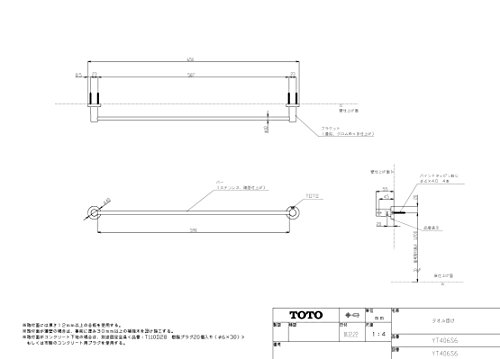 ・サイズ:650×55×40 ・バー:ステンレス製 ・ブラケット:亜鉛合金製(めっき仕上げ) TOTO YT406S6