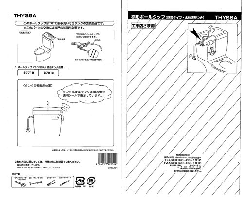 TOTO 横形ロータンク用ボールタップ THYS6A