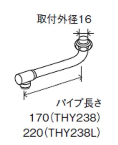 TOTO 自在パイプ キャップ付 L=220mm 取付外径16mm 袋ナットサイズW26山20 THY238L#54R