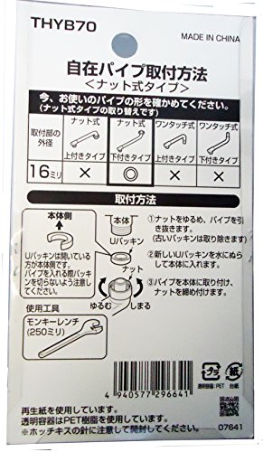 TOTO 自在パイプ キャップ付 L=70mm 取付外径16mm 袋ナットサイズW26山20 THYB70