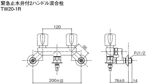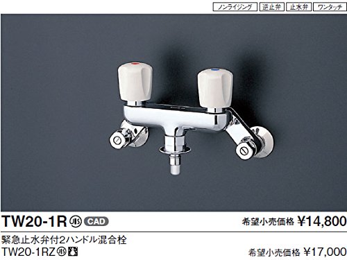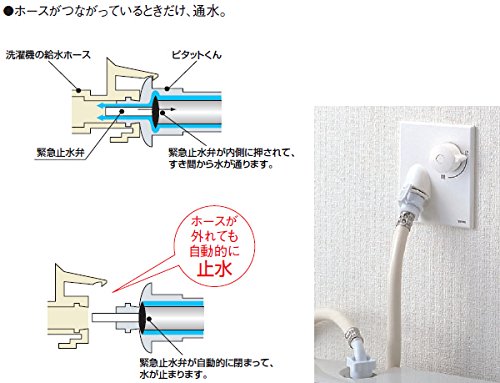 ご不在時の商品配達のご連絡のため、電話番号はなるべく携帯電話の番号を入力してください。 緊急止水弁付2ハンドル混合栓 [ノンライジング/逆止弁/止水弁/ワンタッチ] 全自動洗濯機との組み合わせに最適な洗濯機用の緊急止水弁付水栓です。 1.安心・安全 万一、ホースが外れても緊急止水弁で瞬時に止水。水浸しになる心配がありません。 また、誤ってカプラーが外れないような工夫もしています。 2.点検・メンテナンス性 樹脂配管用のTWAS10型、TWAS20型は接続部すべてがボックス内にあり、点検・メンテナンス性に優れています。 3.省スペース&操作性 新デザインのコンパクト設計。ハンドルが前面にあるため、操作がカンタン(TW20-1型を除く)。 そのうえ、水栓の上部のスペースが広がり、有効に使えます。 出っ張りの少ない壁埋め込みタイプもご用意しています。 4.不快な音を低減 ウォーターハンマー音を低減するタイプも品揃えしています。 5.スパウト回転式(露出タイプ) 吐水口回転タイプなら、ホースの取りまわし自由度もアップします。 ※「ピタットくん」は日本電機工業会規格JEM1206に対応しています。 ご不在時の商品配達のご連絡のため、電話番号はなるべく携帯電話の番号を入力してください。