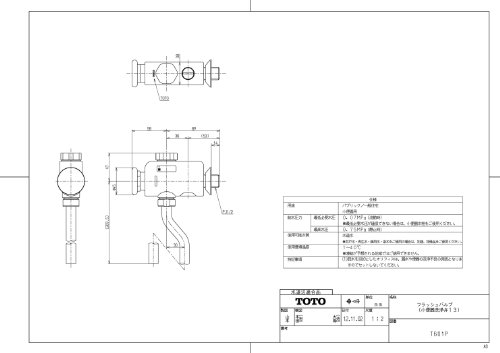 TOTO 小便器フラッシュバルブ T601P
