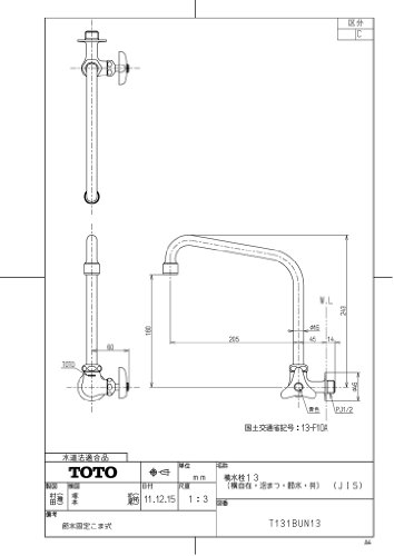 TOTO 単水栓(横水栓) 一般地・寒冷地共用 T131BUN13C