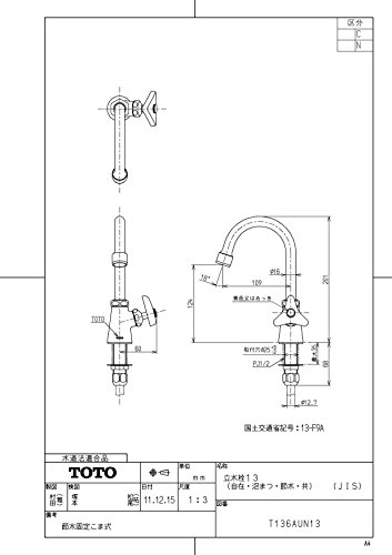 TOTO 立水栓13(自在・泡まつ・節水) T136AUN13N