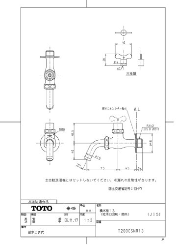 TOTO 単水栓(横水栓) T200CSNR13 (吐水口回転式・キー式)