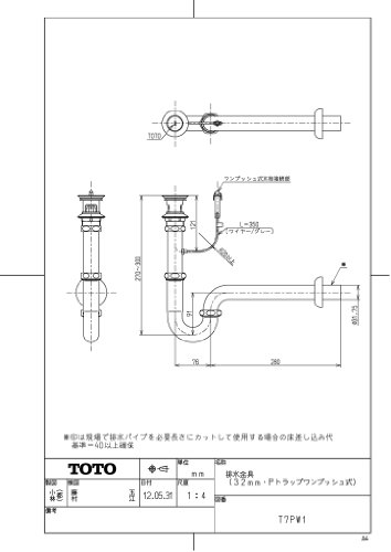 TOTO 排水金具(32mm・Pトラップワンプッシュ式) T7PW1