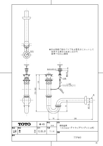 排水金具(32mm・Pトラップワンプッシュ式)