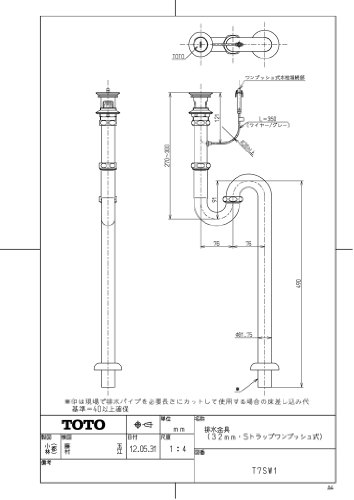 TOTO排水金具(32mm・Sトラップワンプッシュ式) T7SW1