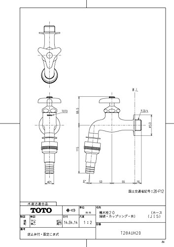 TOTO 単水栓(横水栓) 一般地・寒冷地共用 T28AUH20 (ホース用差し込み金具付き)
